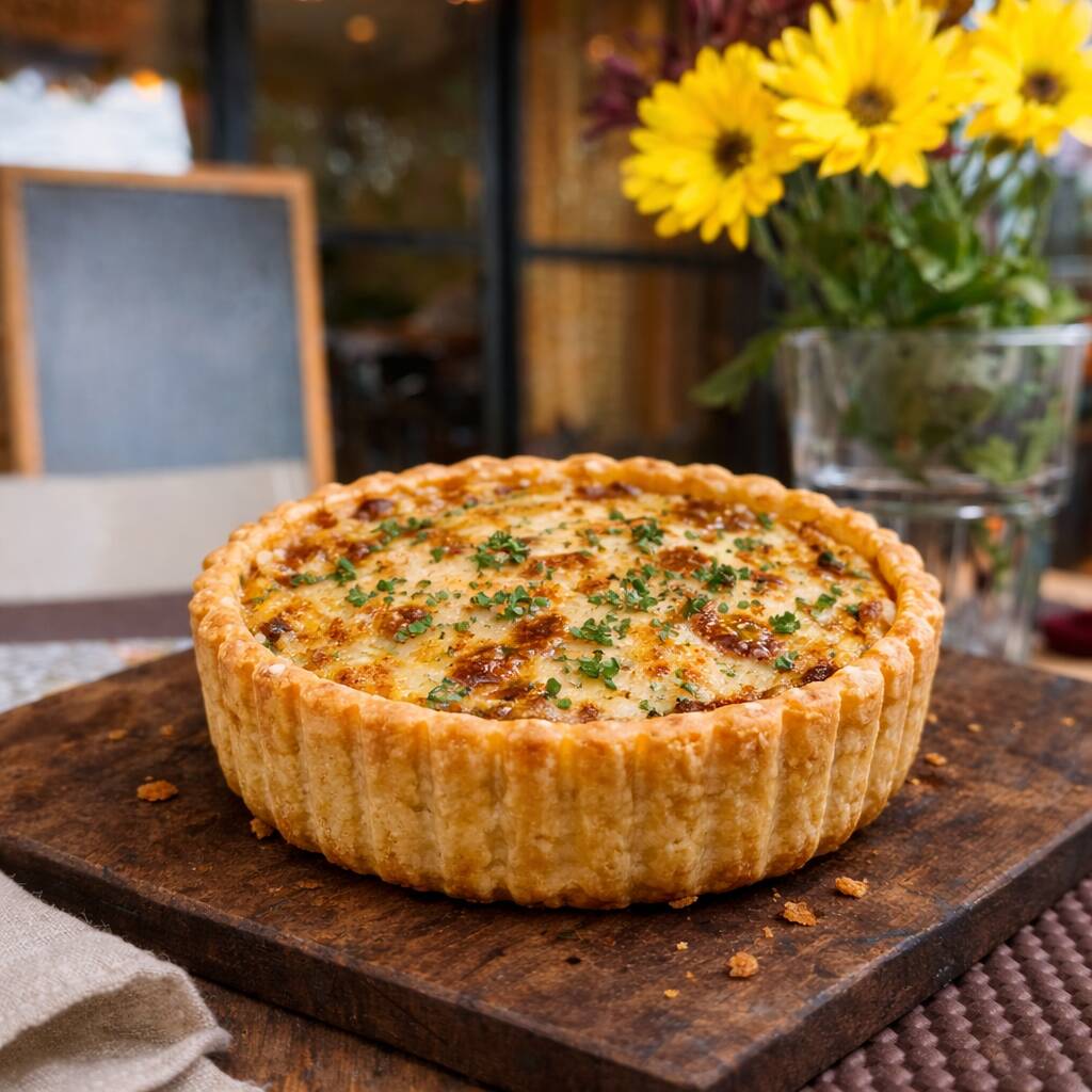 Quiche francesa recheada com camarões rosa salteados e envolvidos em um molho cremoso e aromático, preparado lentamente para realçar o sabor do mar. Assada em massa amanteigada e delicadamente dourada, combina textura macia por dentro com leve crocância por fora — uma opção elegante, suave e extremamente saborosa.