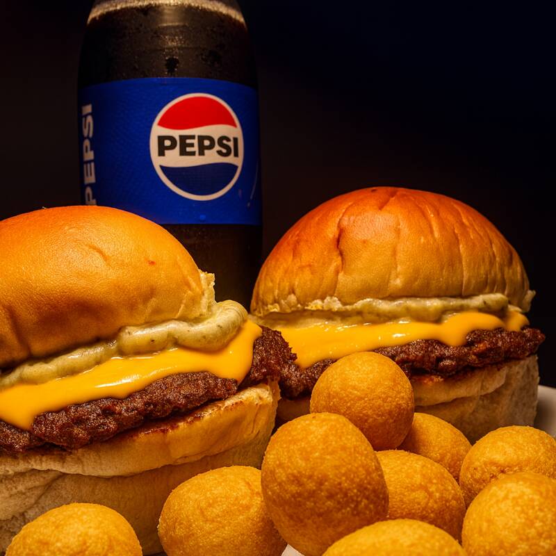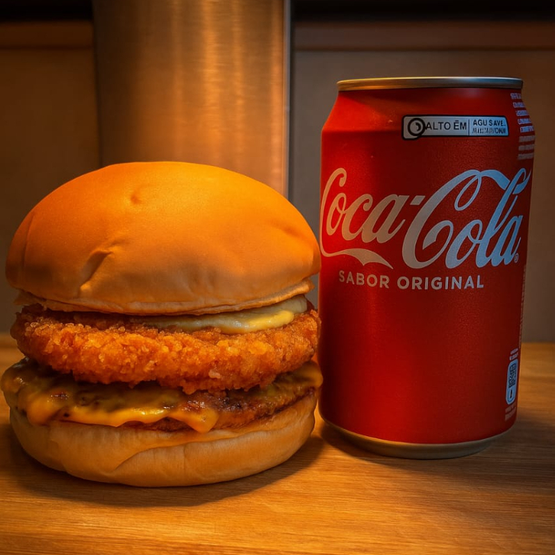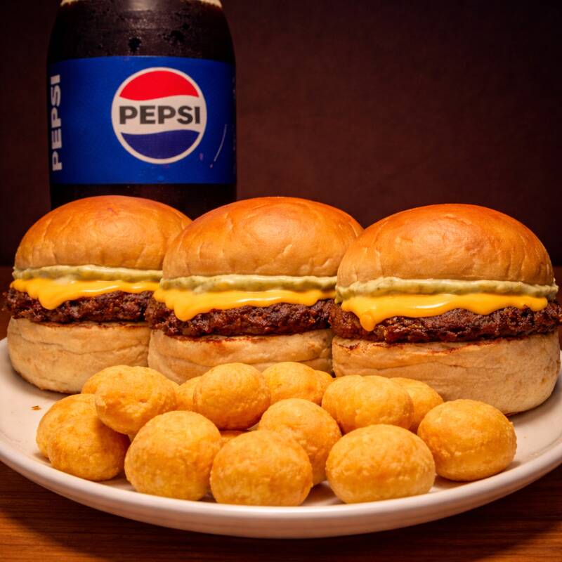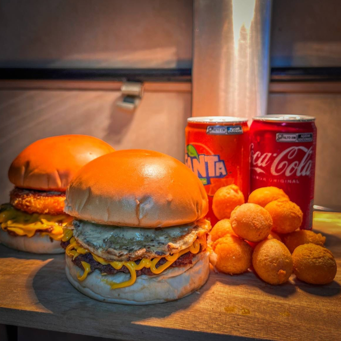 1 - Smash calabra, 1 - Porção de salgadinho, 1 - Refrigerante