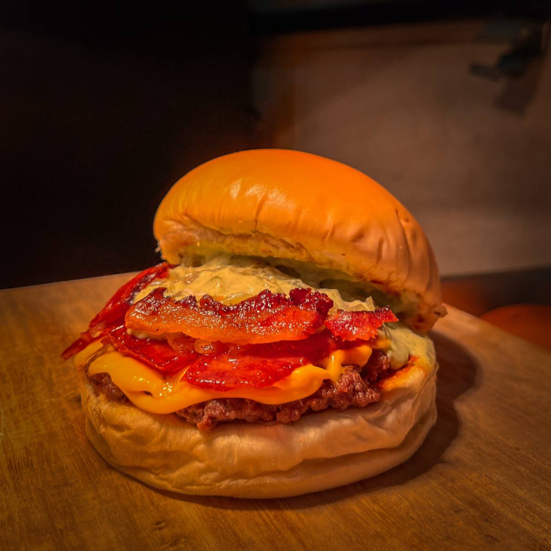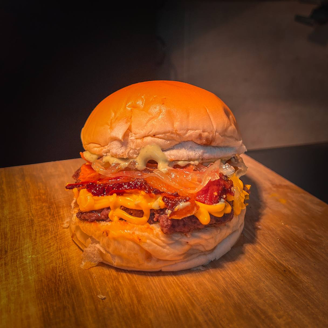 Pão selado, smash 70g, cheddar, bacon, molho do chef/maionese caseira na tampa do pão, acompanha dois saches de molho.