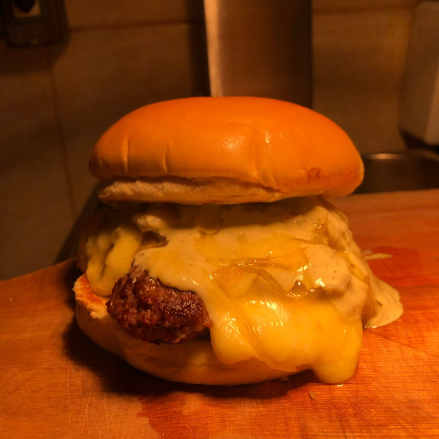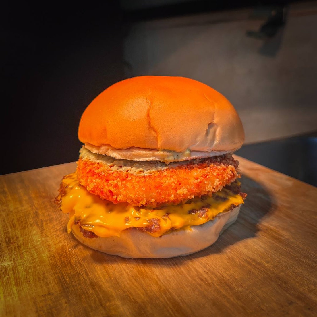 Pão selado, smash 70g, cheddar, disco de catupiry empanado na panko, molho do chef/maionese caseira na tampa do pão, acompanha dois saches de molho.