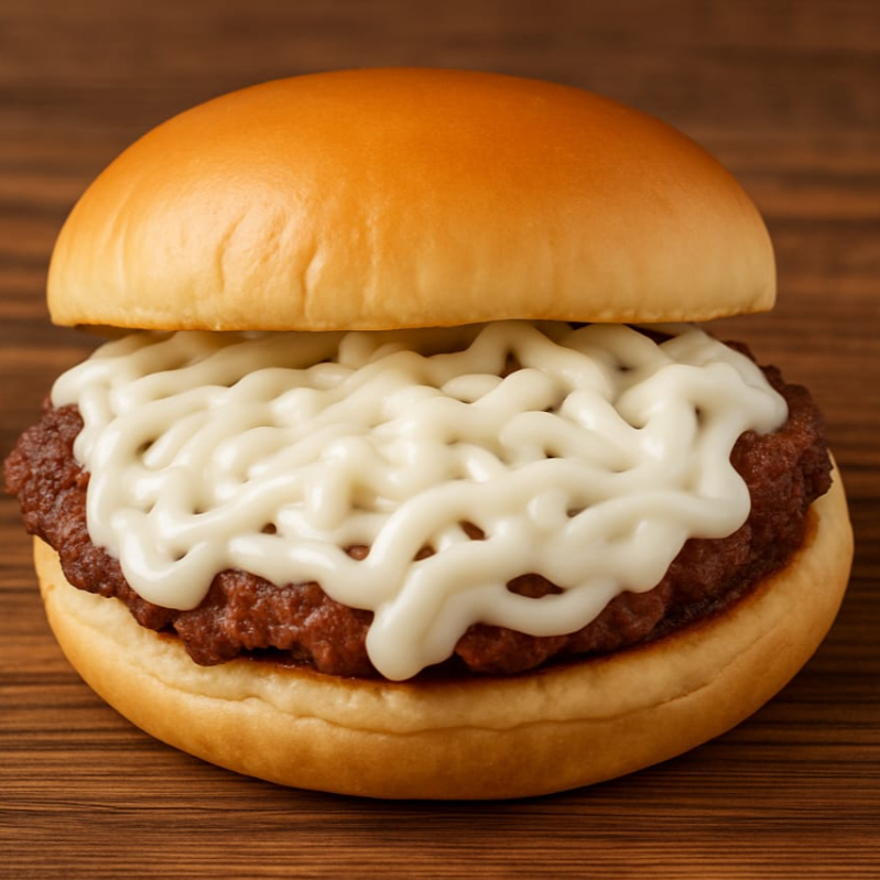 Pão selado, burguer 140g, cheddar, molho do chef/maionese caseira na tampa do pão, acompanha dois saches de molho.