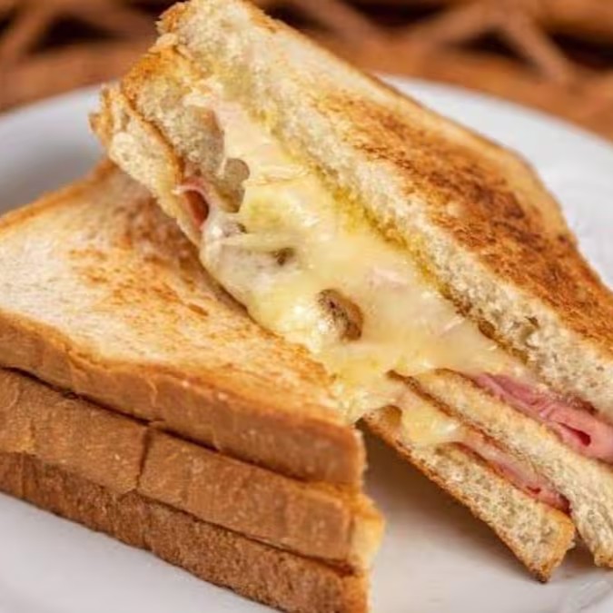 Pão de brioche,frango em cubos,ovo,presunto,queijo cheddar,tomate e molho da casa.