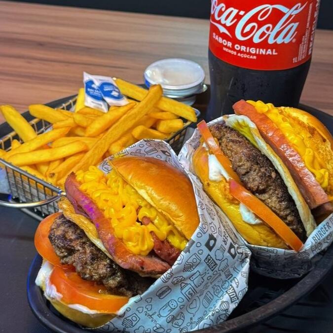 Pão de brioche,3 carnes de smash90g,3 queijos e molho da casa.
