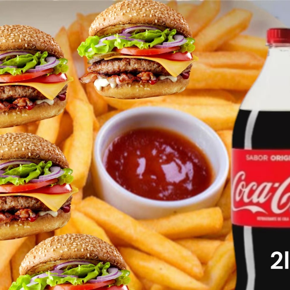 4 egg burgueres, 1 batata frita 400g, 1 coca 1,5 litro