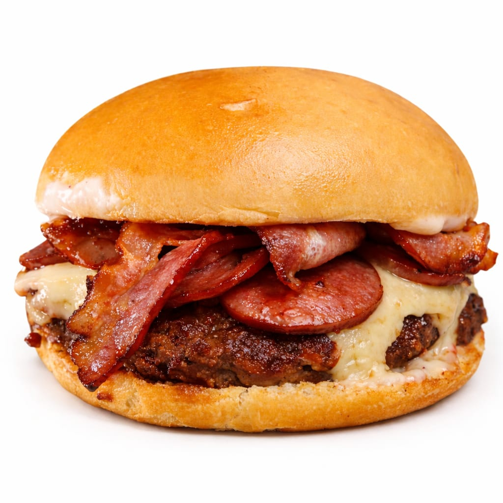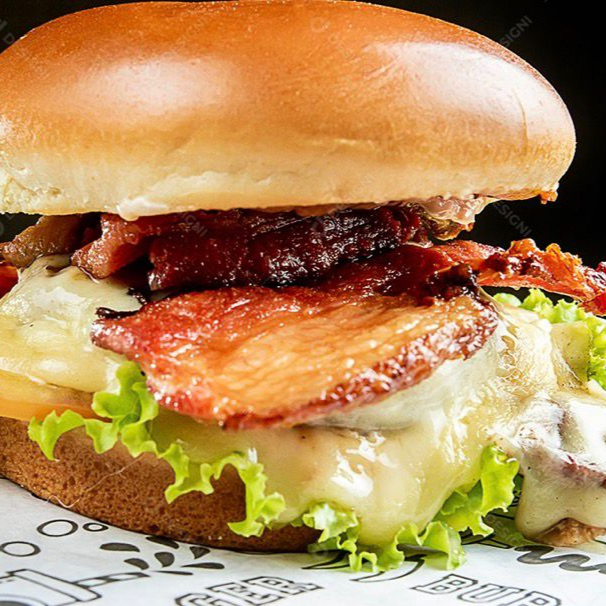 PÃO, CARNE 150G, QUEIJO, CALABRESA, BACON, BATATA FRITA SALADA, BATAT PALHA