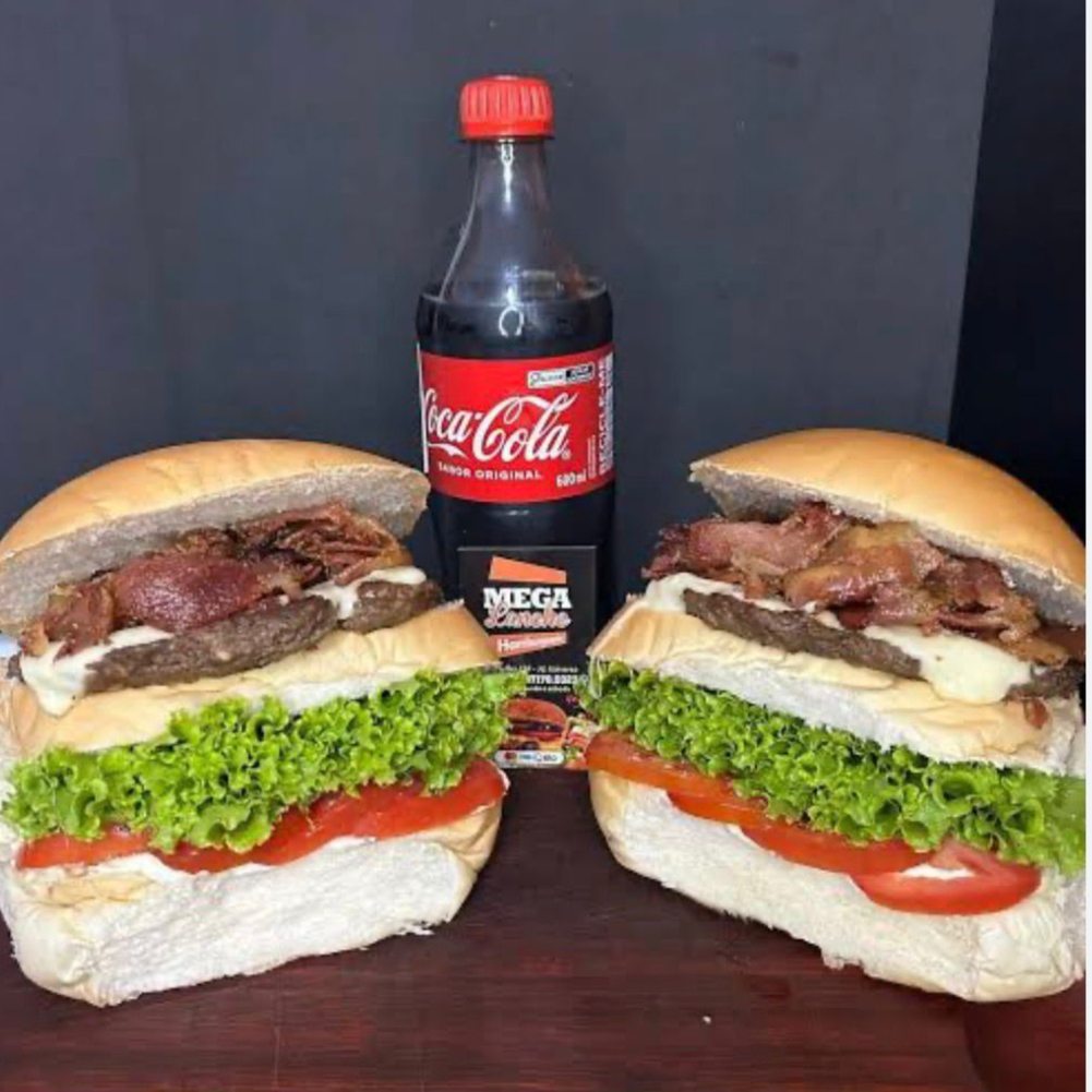 2 Hambúrguer Especiais, carne, calabresa, queijo e salada + Coca litro