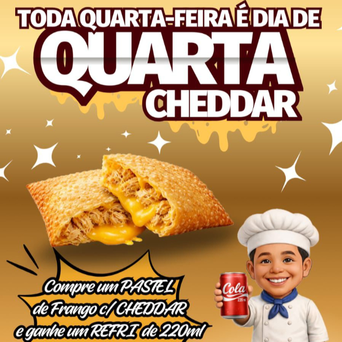 Na compra de um delicioso Pastel de Frango Cheddar ganha por conta da casa um refrigerante 220! ml!