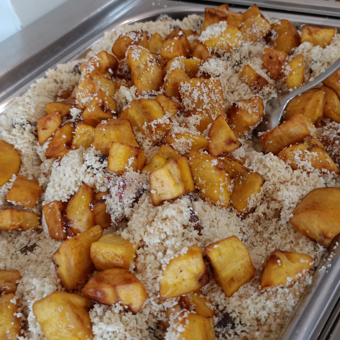 Acompanhamento arroz, feijão, Macarrão, salada e farofa