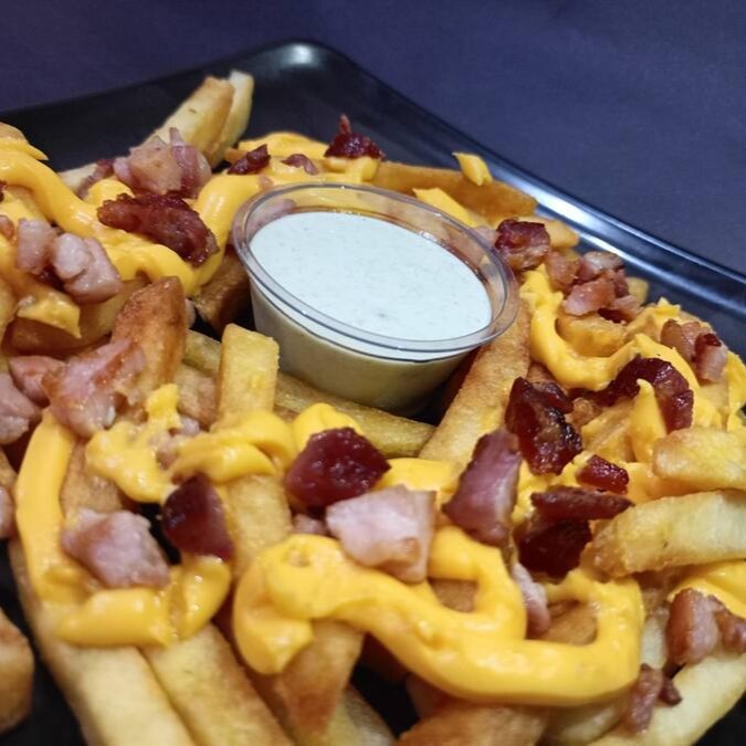 Batata frita c/ Cheddar e Bacon- M; 350g