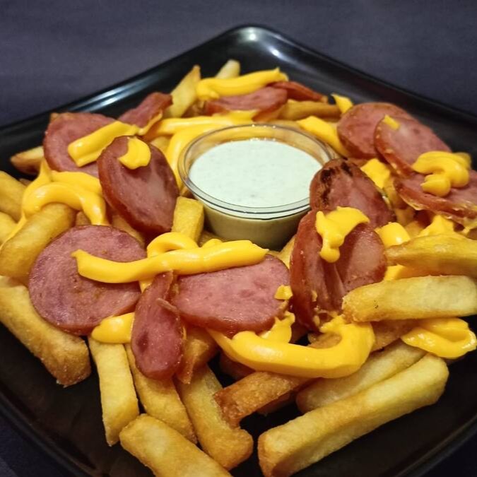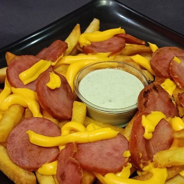 Batata Frita c/ Cheddar e Calabresa- M; 350g