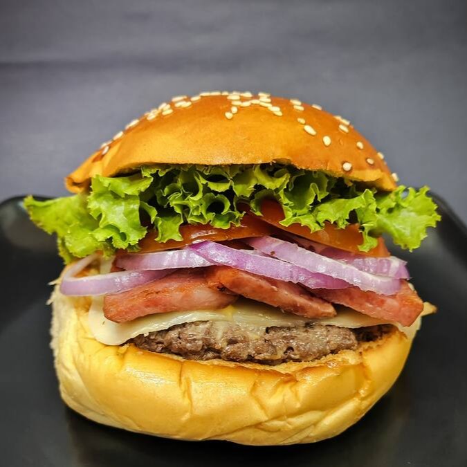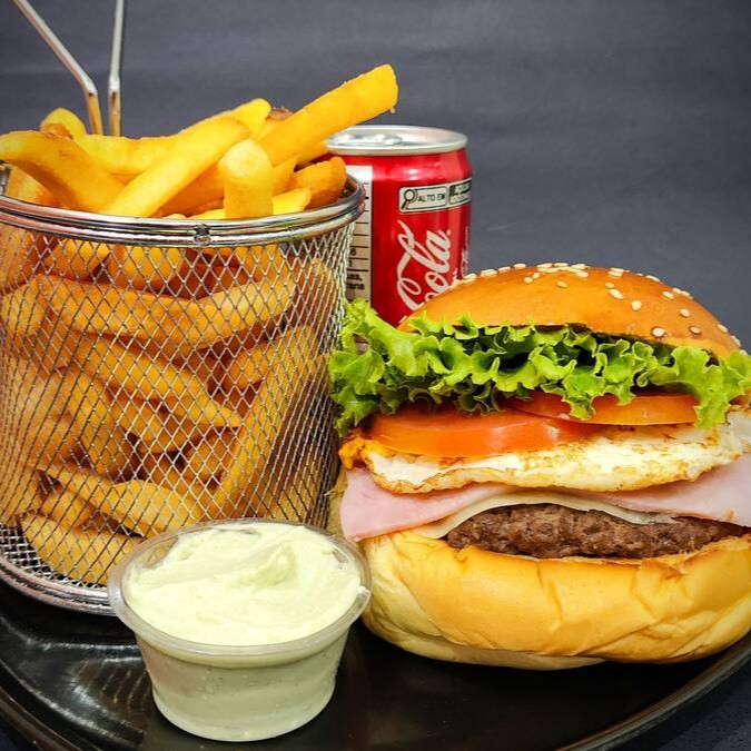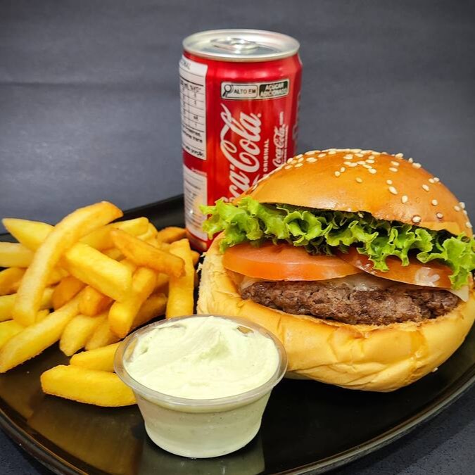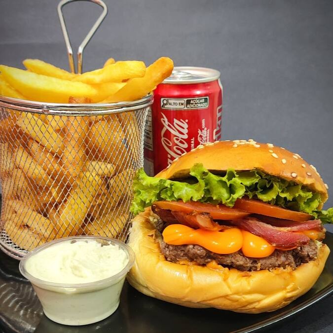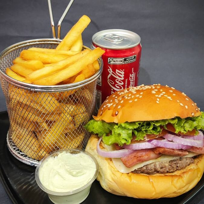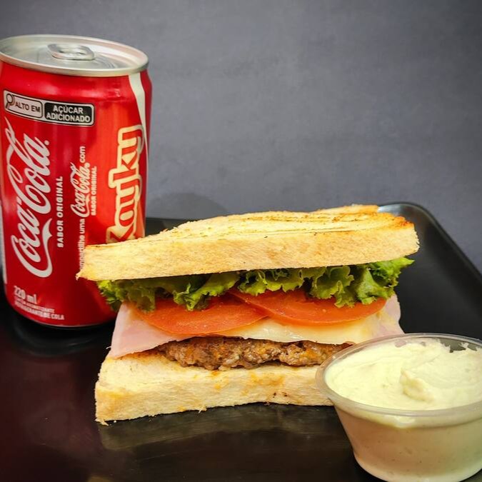 Pão de hambúrguer, 90 g de Carne, queijo Mussarela, Presunto, Ovo, Tomate e Alface uma combinação clássica e deliciosa.