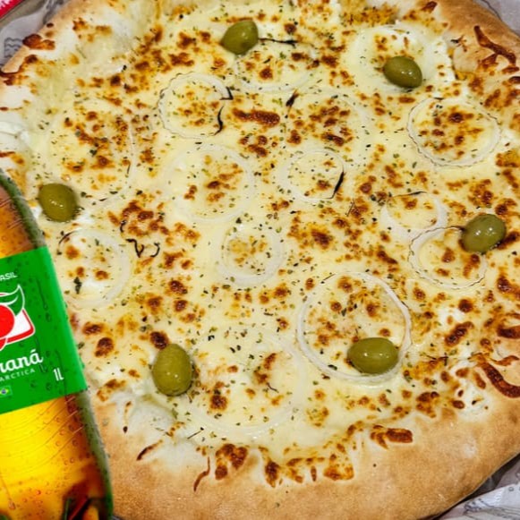 Pizza com Molho de tomate artesanal, queijo mussarela, Catupiry Original, cheddar Original e orégano.