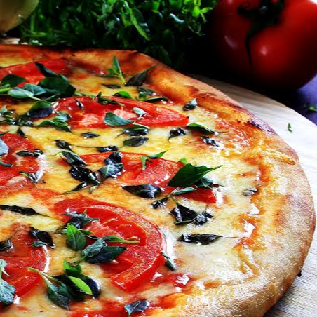Molho, mussarela, manjericão, tomate, orégano e milho.