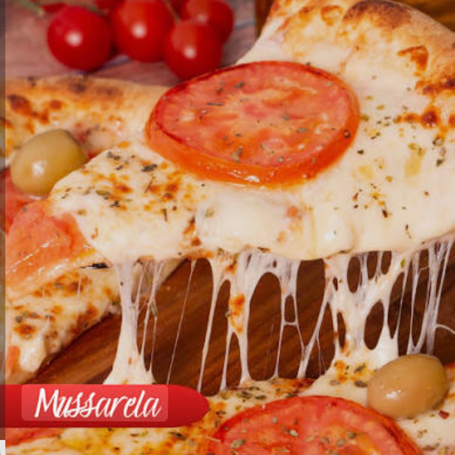 Molho, mussarela, parmesão, cheddar, catupiry, tomate, orégano e milho.