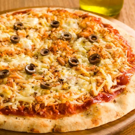 MOLHO KING, MUSSARELA, MANJERICÃO, TOMATE, AZEITONA E ORÉGANO. DISPONÍVEL NOS TAMANHOS: P(25cm), M(30cm) e F(35cm)
