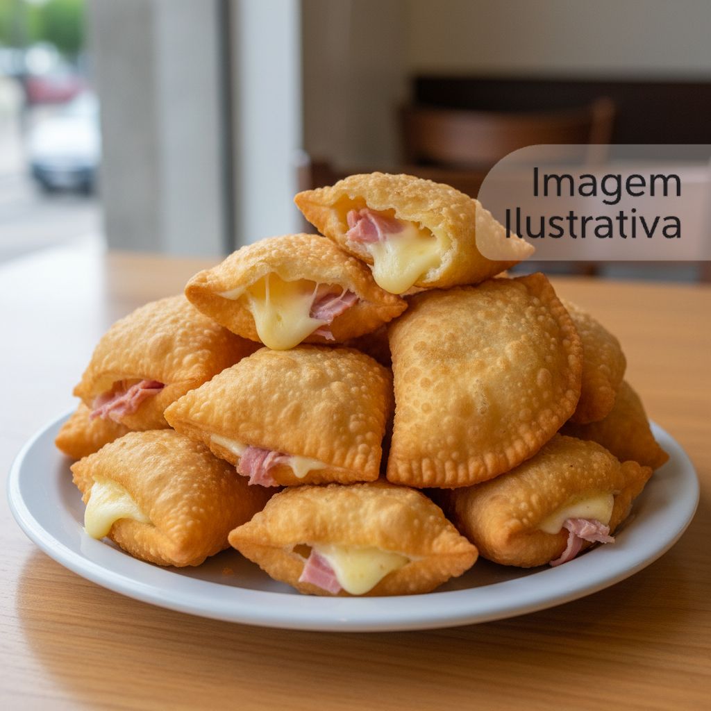Delicioso pastel recheado com uma combinação clássica de queijo derretido e presunto suculento.