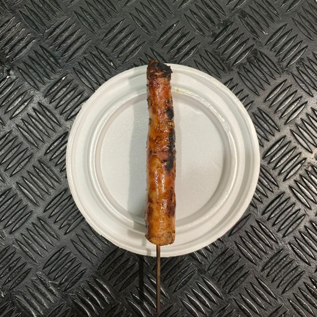 Toscana de frango acompanhado de feijão, arroz, macarrão, salada e farofa.