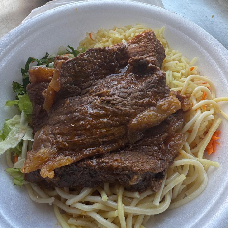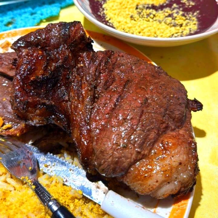 Acompanha feijão, arroz, macarrão, farofa e salada.