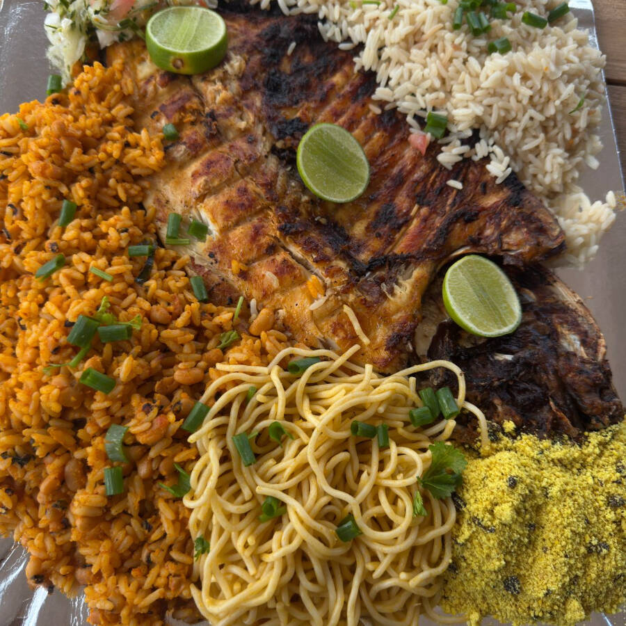 Feijão, Arroz, Macarrão, Farofa, e Salada .