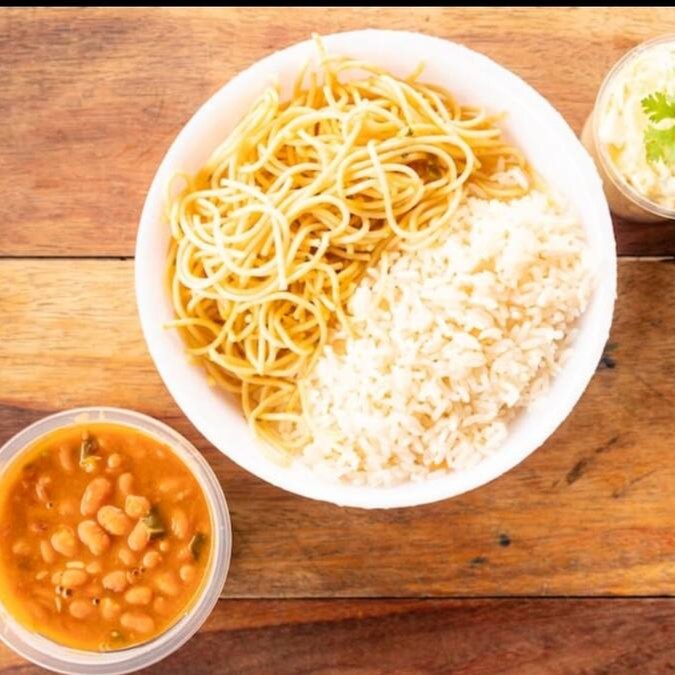 Porção De Quase 1kg De: ︎Arroz ︎Feijão ︎Macarrão ︎Salada De Maionese