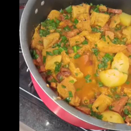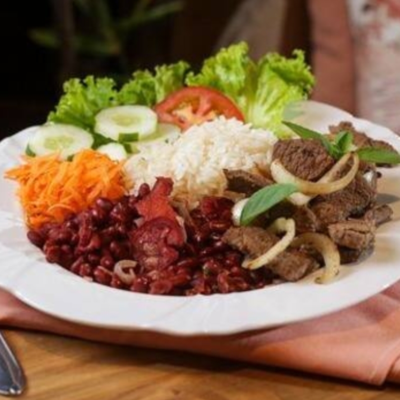 Guarnição: arroz, feijao, salada verde, farofa e macarrão