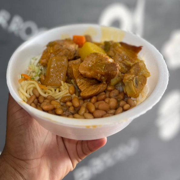 Acompanhamentos: arroz, feijão, salada, farofa e macarrão