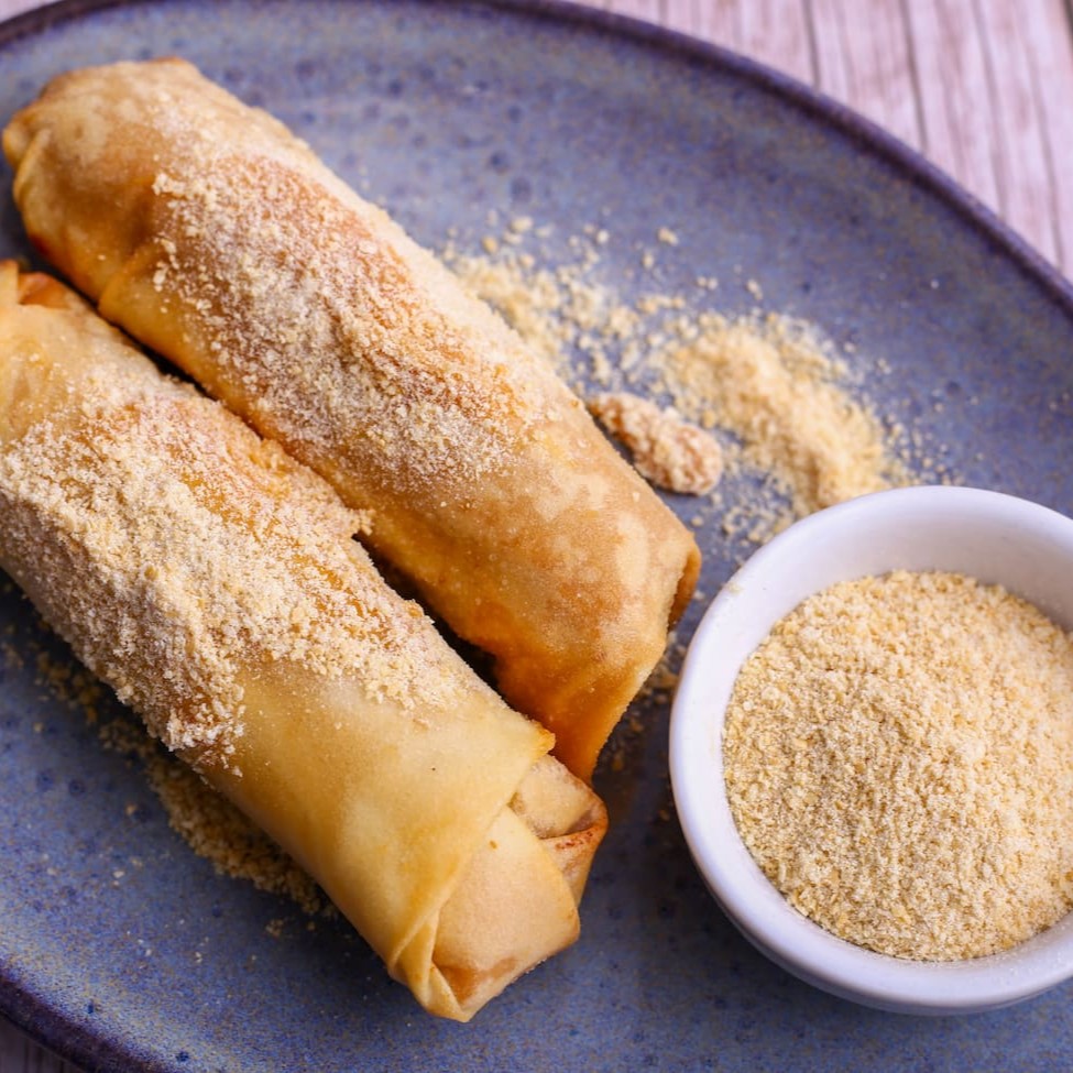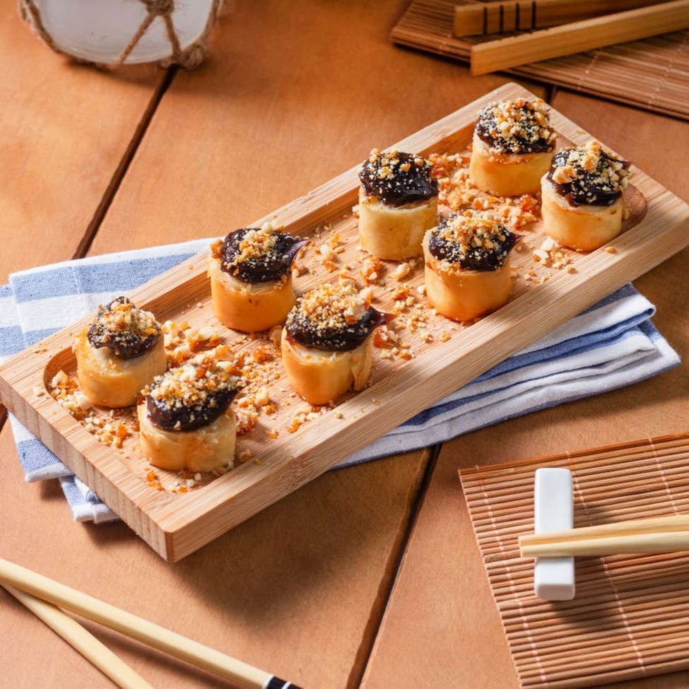 Rolinho de arroz recheado com dois sabores à escolha e cream cheese, envolto em uma massa de harumaki crocante.