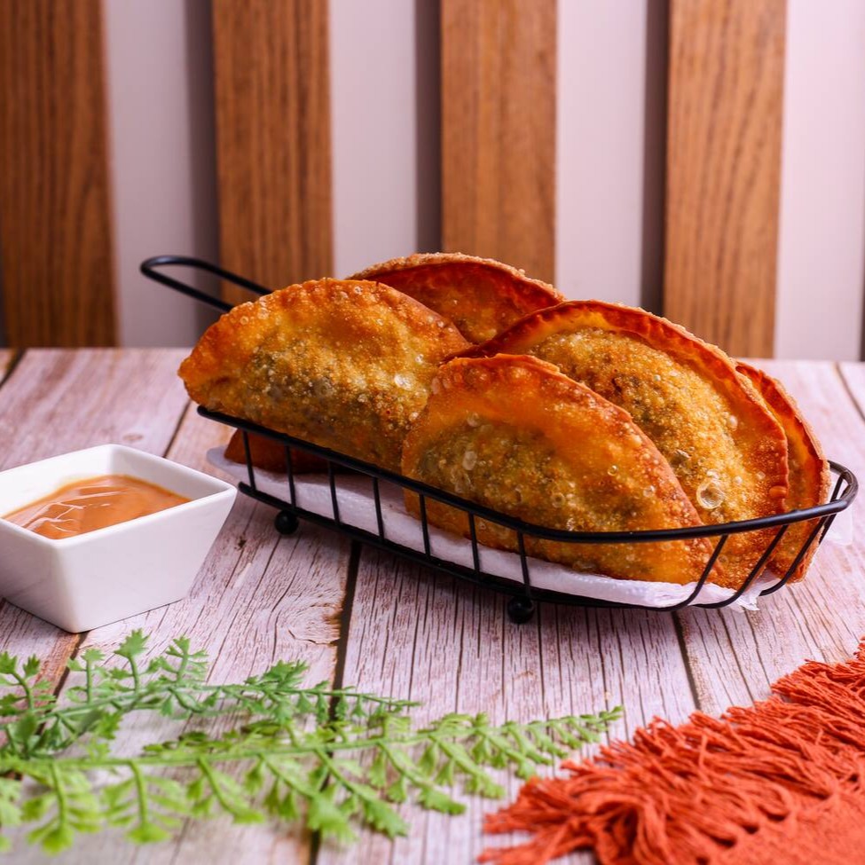 Seis unidades de pastéis deliciosos recheados de carne.