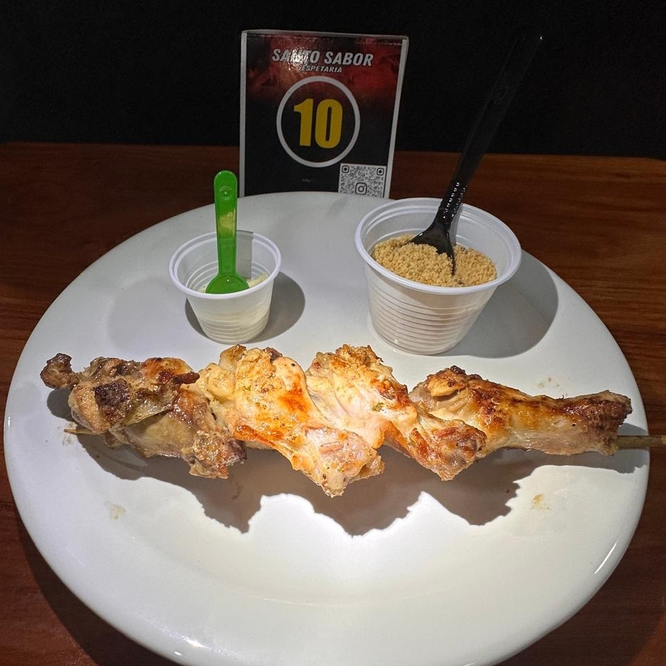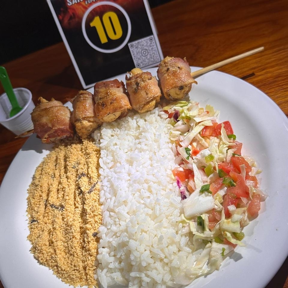 Suculentos pedaços de frango envoltos em fatias de bacon, grelhados na brasa para dar um sabor defumado irresistível.