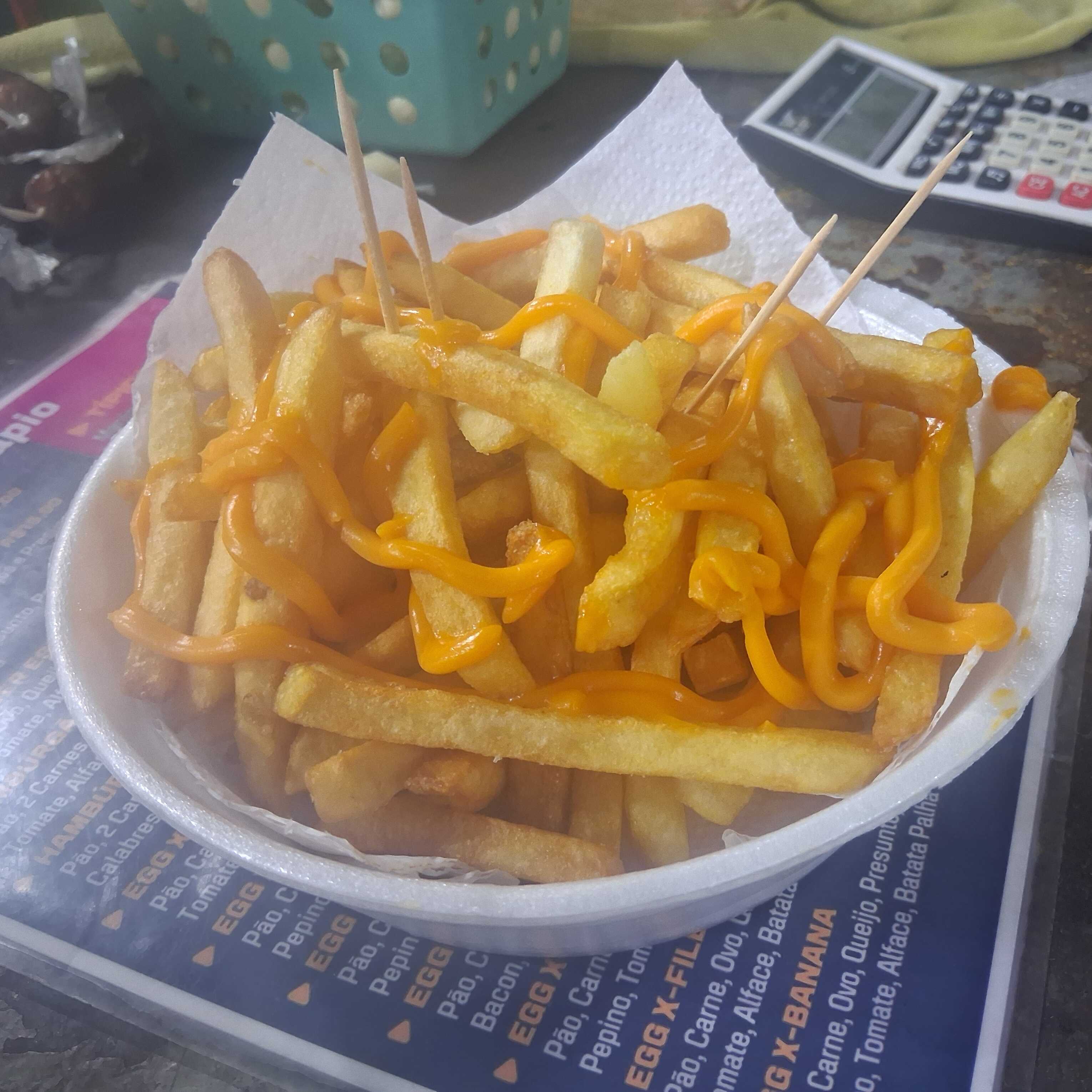 Batata frita ,katchupp ,maionese,queijo ralado