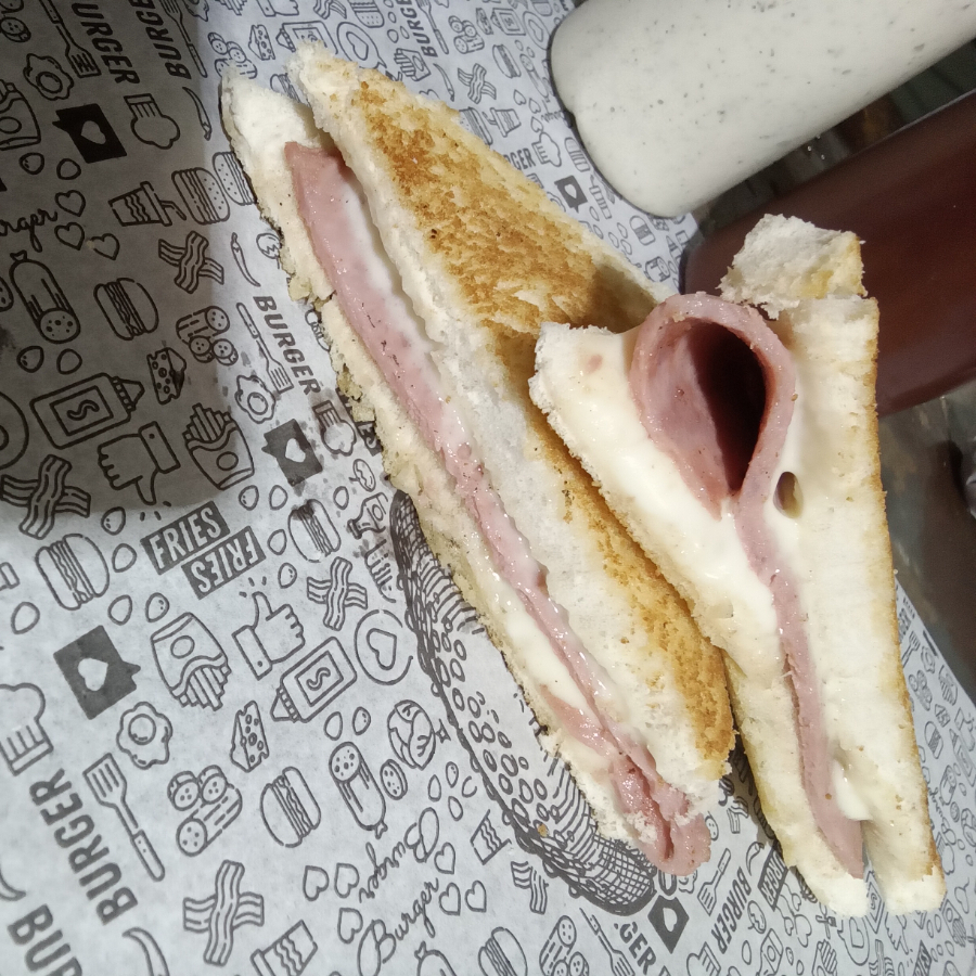 Pão de forma, queijo e presunto.