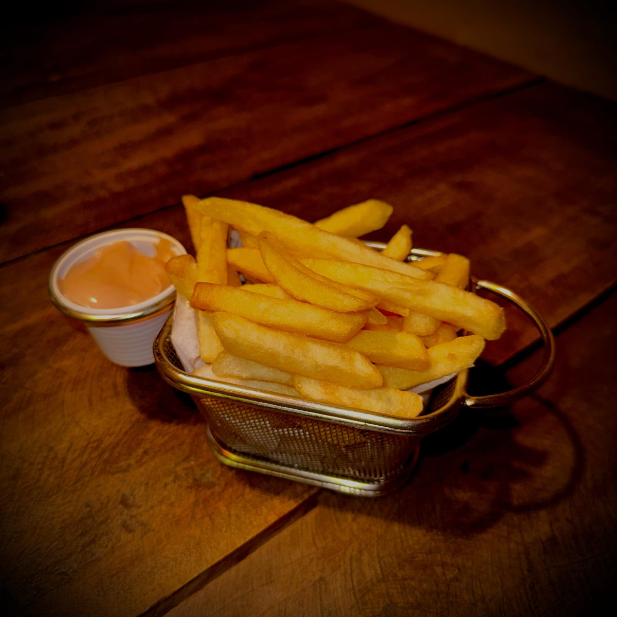 Pão, Molho Baconese, Bacon, Disco de Queijo, Toscana, Batata Frita, Molho Cheddar,Carne 150g, Calabresa, Parmegiana, Ovo, Tomate e Alface. Acompanhamento: Molho Barbecue