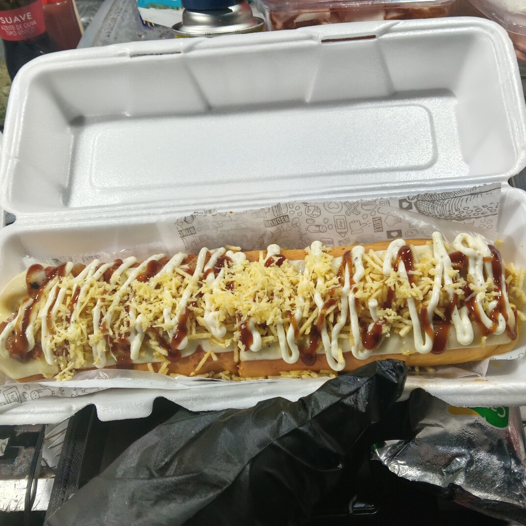 Carne assada de panela desfiada, carne de hambúrguer, frango, salsicha, calabresa, queijo , presunto, bacon, cheddar, cebola caramelizada, ovo, salada uma explosão de sabores pra você se deliciar
