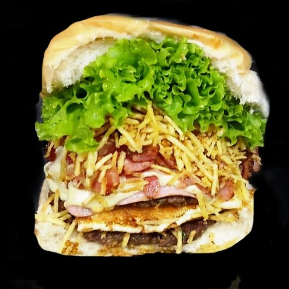 Pão de bola, carne, ovo, queijo, presunto, salada e batata palha. Uma explosão de sabores frescos e crocantes em cada mordida.