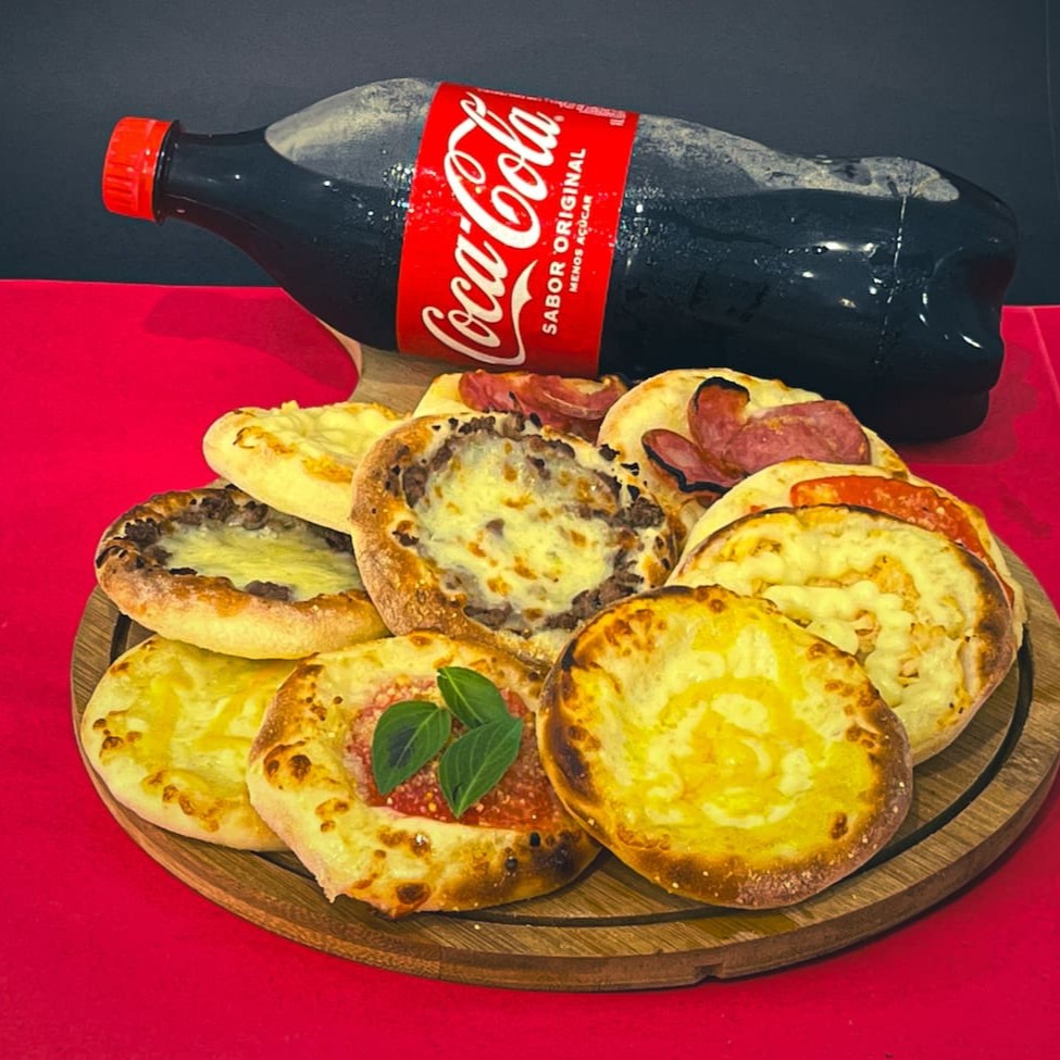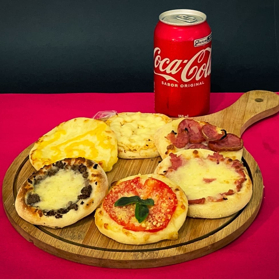 A Melhor Esfiha de Macapá! 2- Esfiha Carne com Queijo, 2- Esfiha Frango Catupiry, 2- Esfiha Calabresa com Queijo, 2- Esfiha Marguerita, 2- Esfiha 3 Queijos. São 10 unidades com os 5 sabores mais deliciosos e vendidos, para melhorar ainda mais você leva uma Coca-Cola 1l.