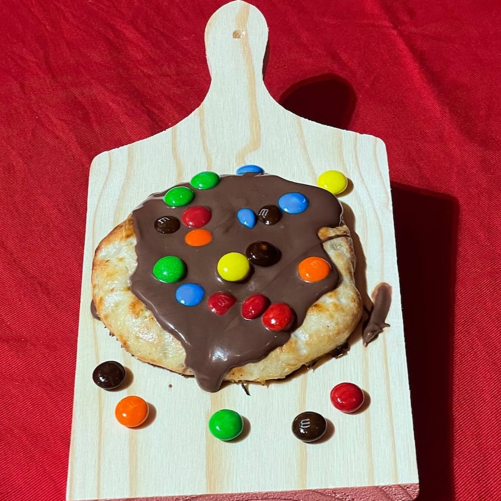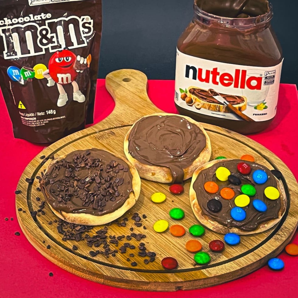 Deliciosa Esfiha recheada de chocolate ao leite e M&M Original.