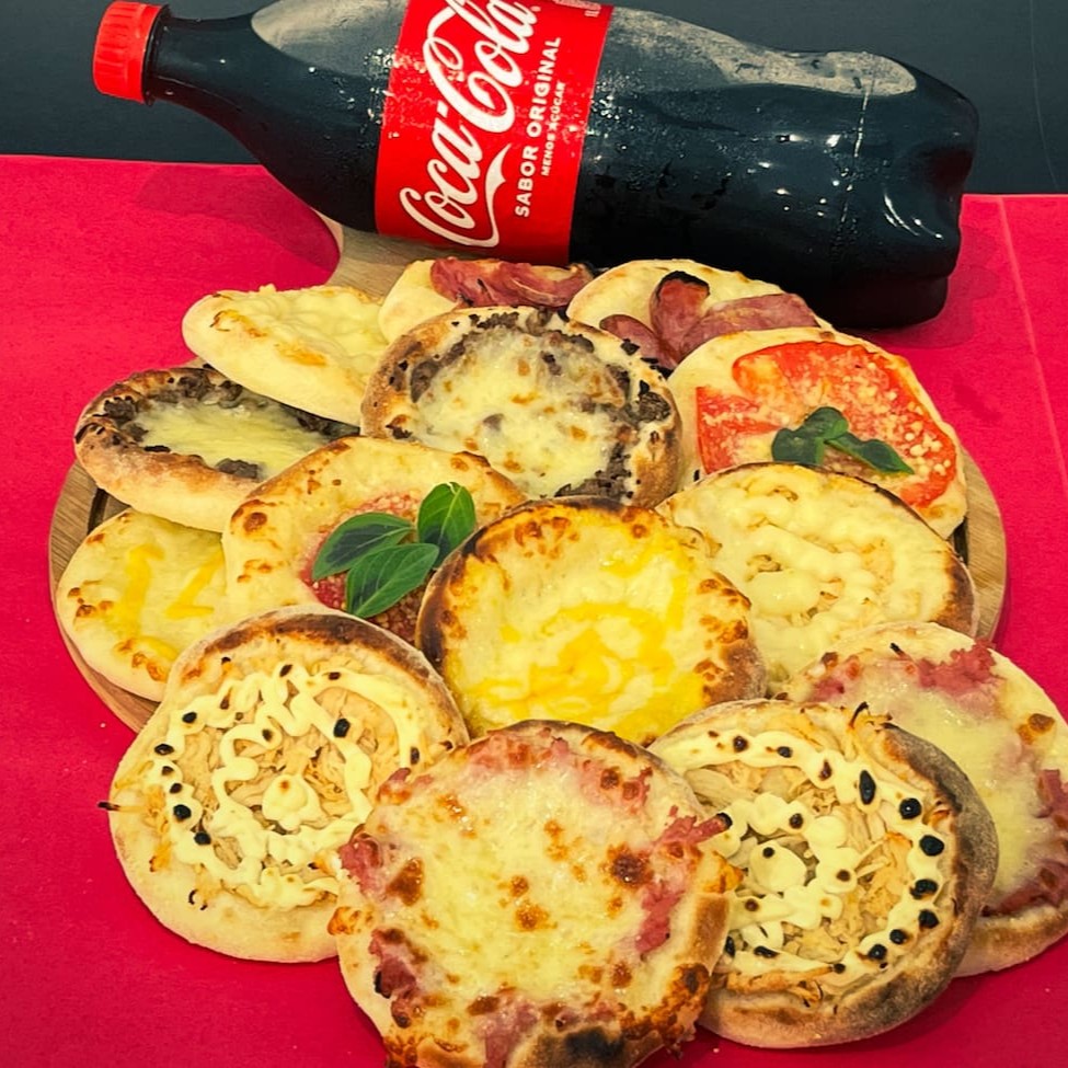 A Melhor Esfiha de Macapá! 2- Esfiha Carne com Queijo, 2- Esfiha Frango Catupiry, 2- Esfiha Calabresa com Queijo, 2- Esfiha Marguerita, 2- Esfiha 3 Queijos, 2- Esfihas Presunto com Queijo, 2- Esfiha Frango Philadelphia. São 14 unidades com os 7 sabores mais deliciosos e vendidos, para melhorar ainda mais você leva uma Coca-Cola 1l.