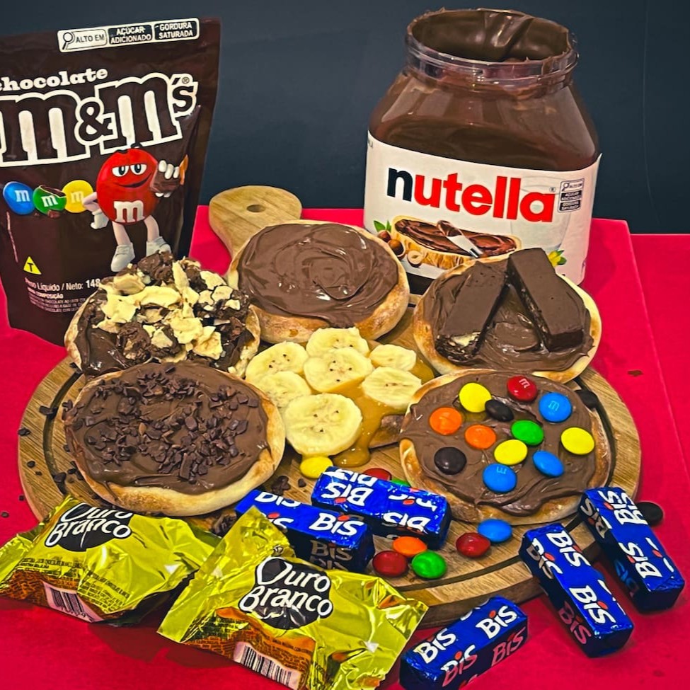 A Melhor Esfiha Doce Chegou! •São 6 unidades com os 6 sabores mais queridos e deliciosos; 1- Esfiha Nutella, 1- Esfiha Chocolate Granulado, 1- Esfiha Bis Original, 1- Esfiha Doce de Leite com Banana, 1- Esfiha Brigadeiro de ouro branco, 1- Esfiha Chocolate e M&M.