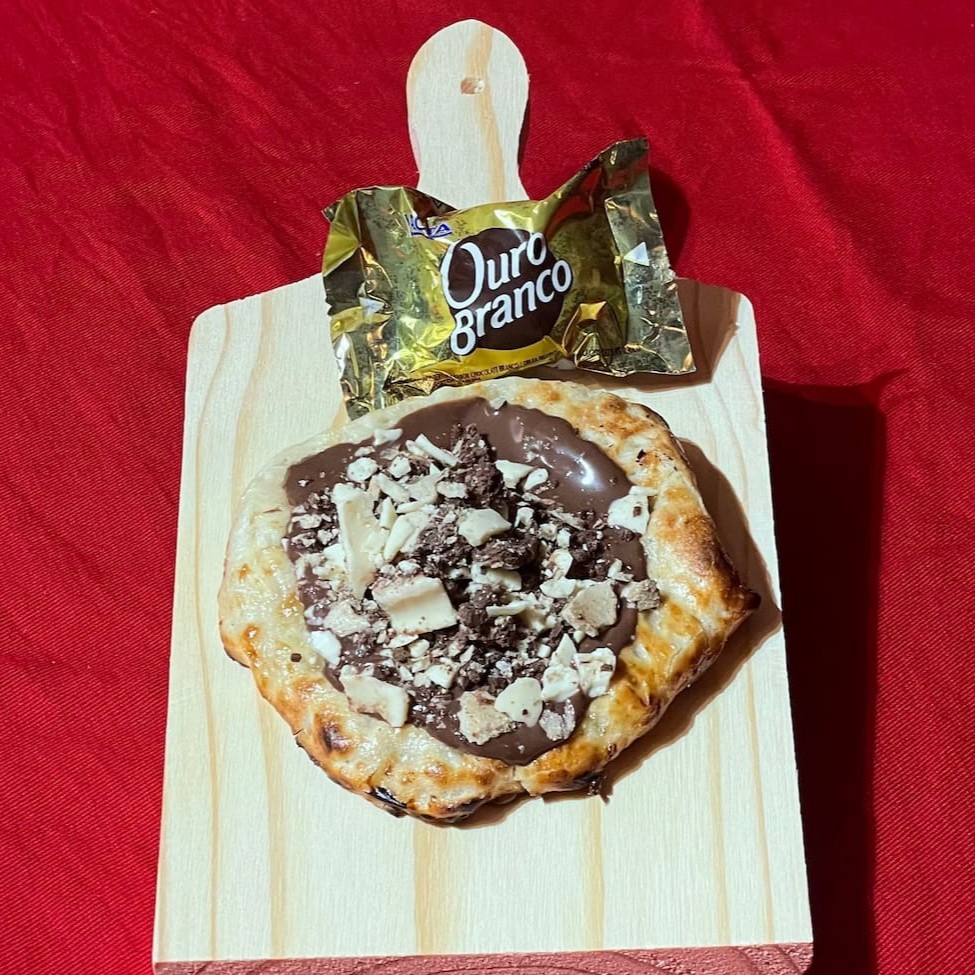 Deliciosa esfiha recheada de chocolate ao leite e Ouro Branco triturado.