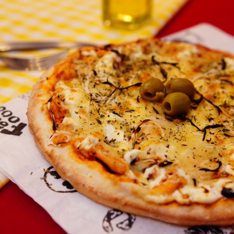 Pizza deliciosa é com cream cheese, querida pizza de Frango desfiado com cream cheese, queijo derretido, cebola, azeitona e orégano e mais um Guaraná 1l.