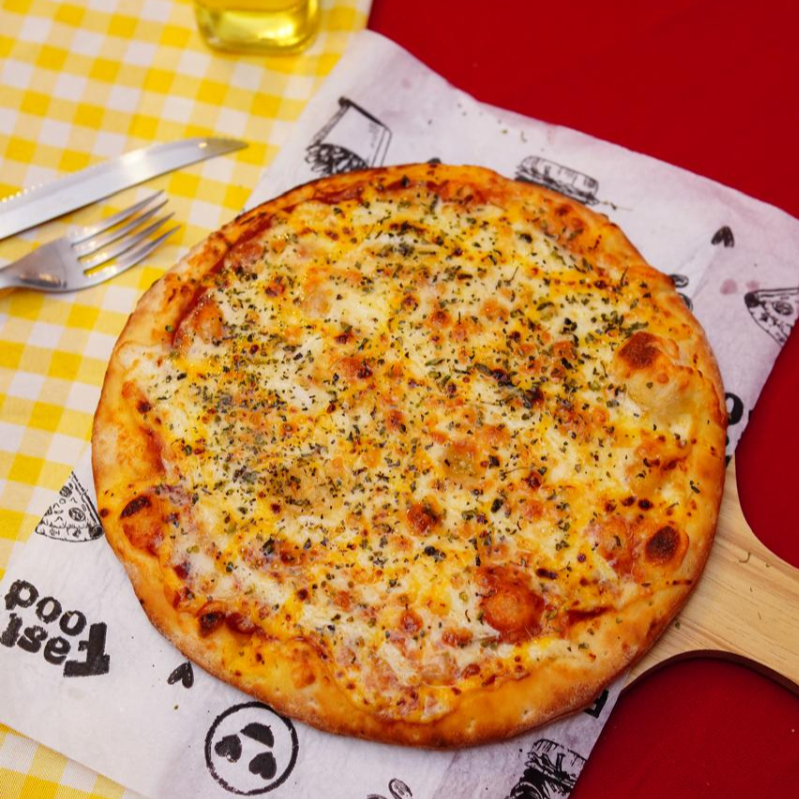 Combo casal com uma pizza deliciosa recheada de queijo, cheddar, Catupiry Original e orégano. Perfeito para uma noite com filmes