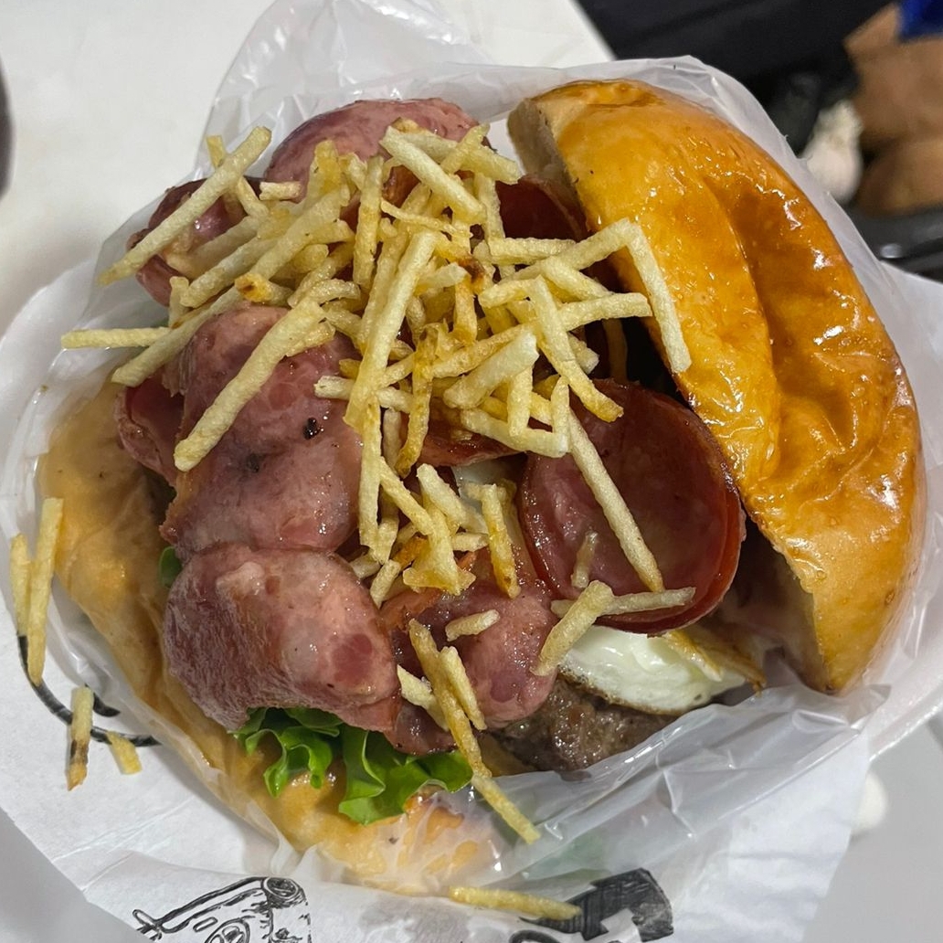 Pão, 2 carnes, ovo, queijo, presunto, calabresa, salada e batata palha