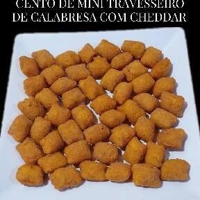 Este cento vem com 4 sabores sendo 25 unidades de cada. 25 Mini Coxinha de frango 25 Mini Bolinha de Queijo 25 Mini Pastel (carne ou frango) 25 Mini Canudinhos (patê de Frango)
