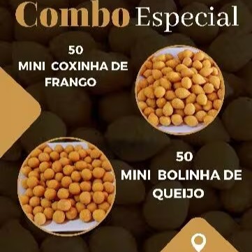 Este é o nosso combo 50 bolinha de queijo mussarela + 50 mini coxinha . Massa de salgados tradicionais. Mergulhe e se delicie!