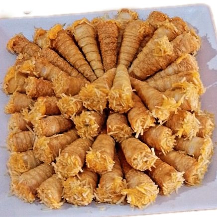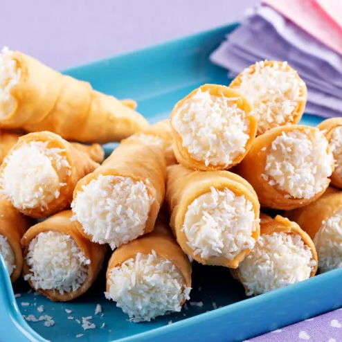 São 25 canudinhos crocantes recheados com brigadeiro sabor beijinho. Perfeitos para servir em festas, eventos ou saborear a qualquer hora!