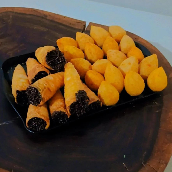 25 Mini Coxinha De Frango + 20 Canudinhos De Chocolate 🍫