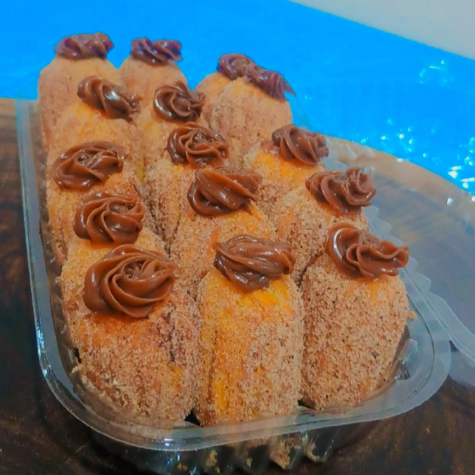Meio cento de churros sabor doce de leite .