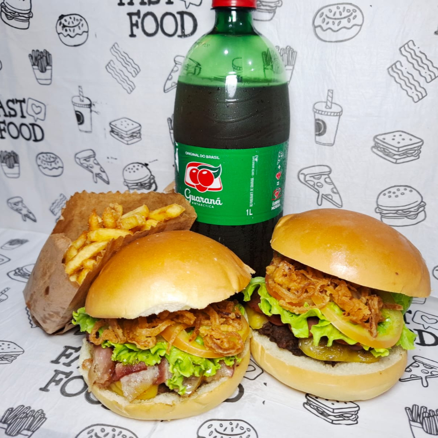 1 X- ARTESANAL, 1 PORÇÃO DE FRITAS E 1 REFRI EM LATA 350ml