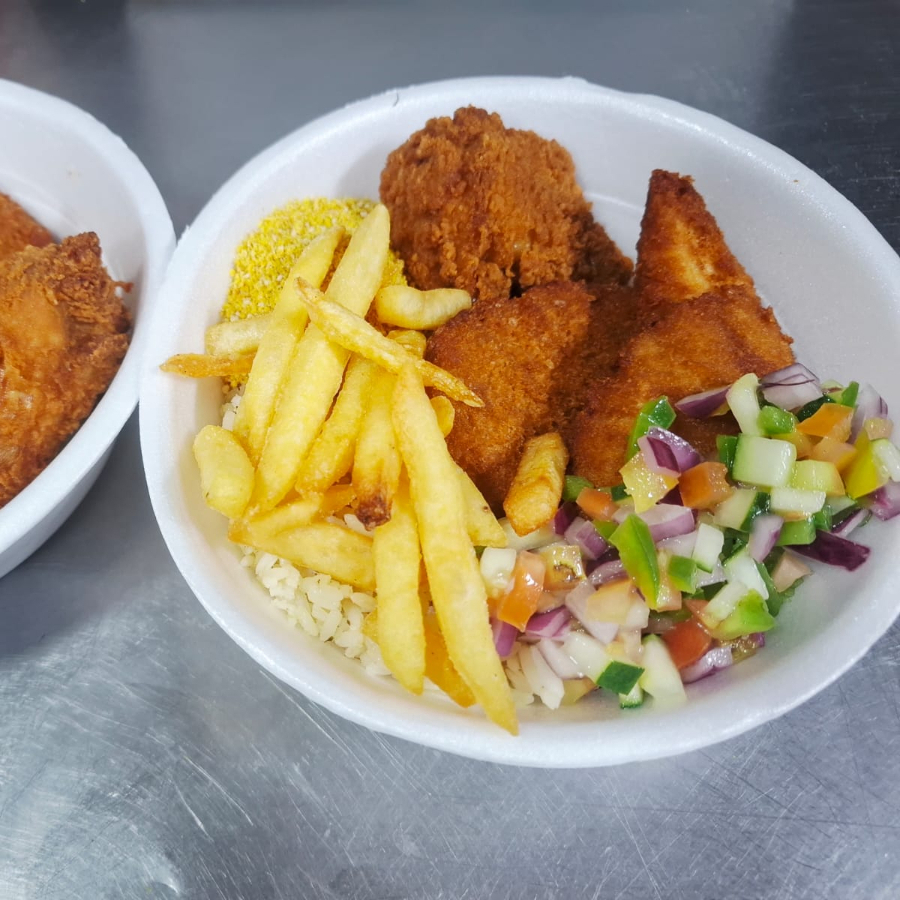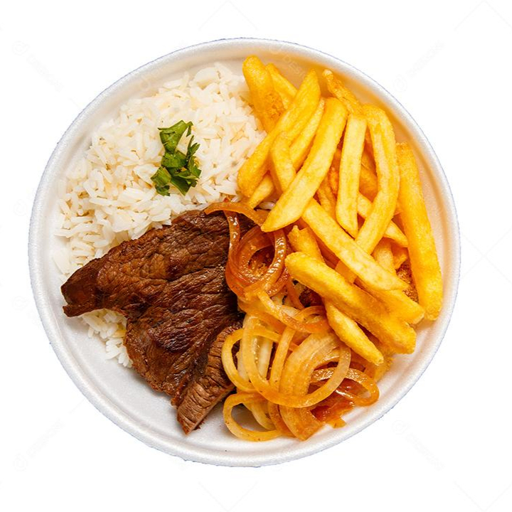 Acompanha: Arroz, vinagrete, farofa e fritas.