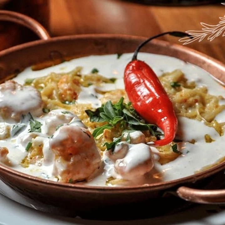 File de ourada , servido sobre creme de tucupi e camaroes rosa , acompanha arroz branco.